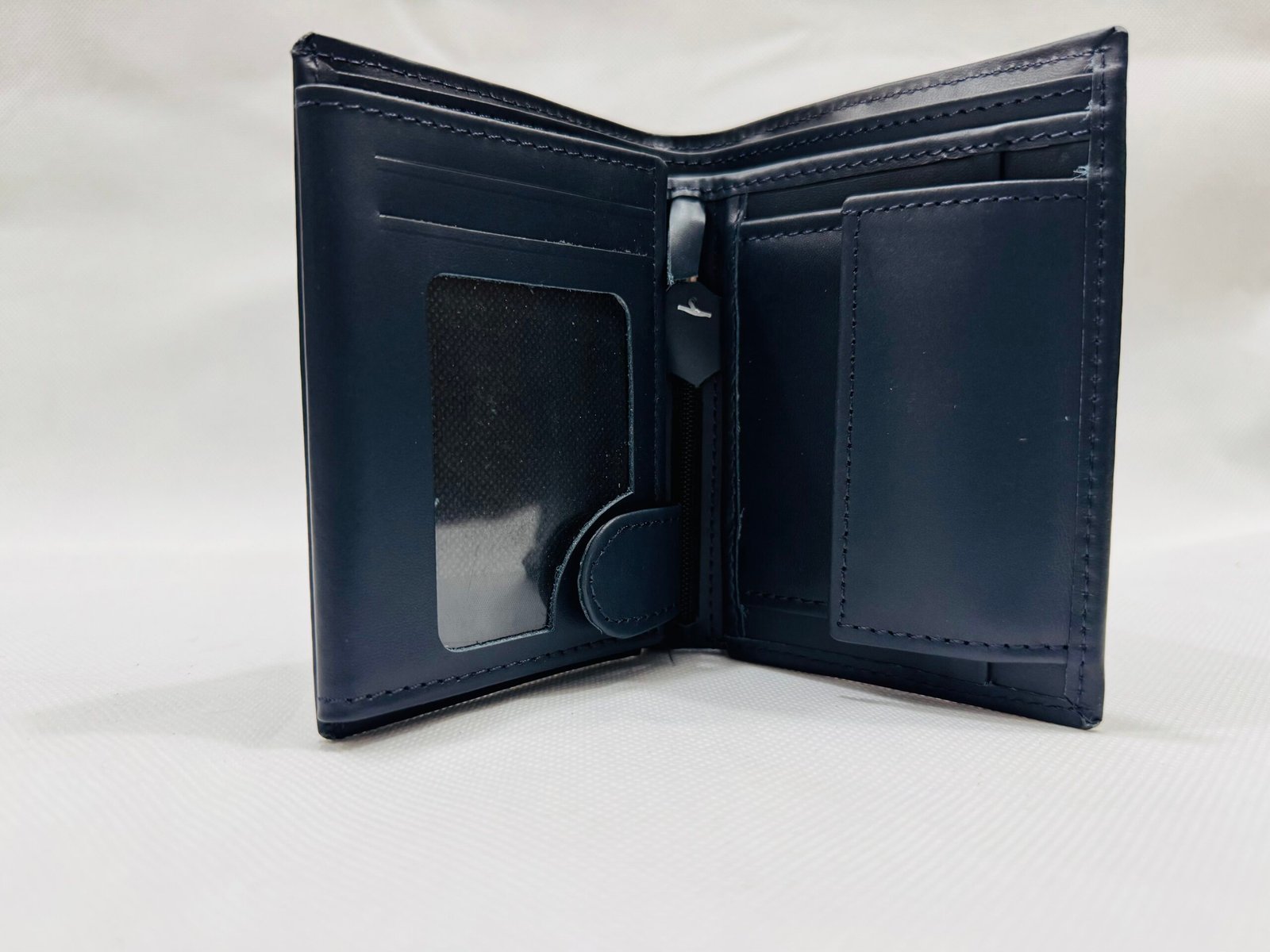 A smart, vertically oriented trifold wallet offering maximum storage capacity in smooth, durable leather, perfect for organized daily carry.
