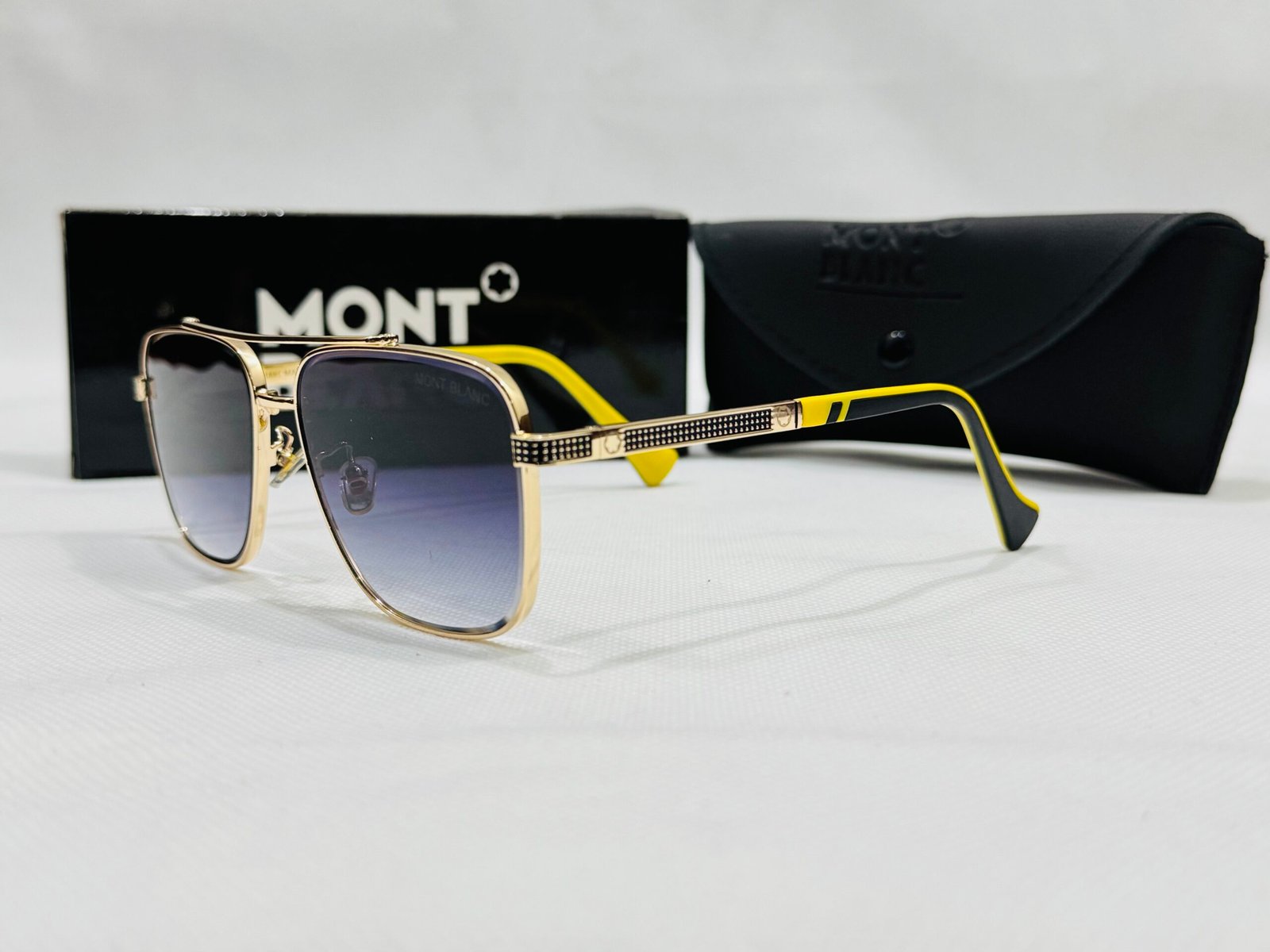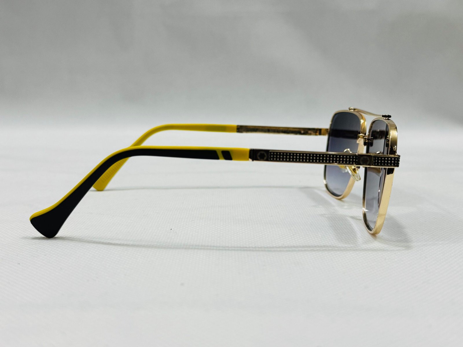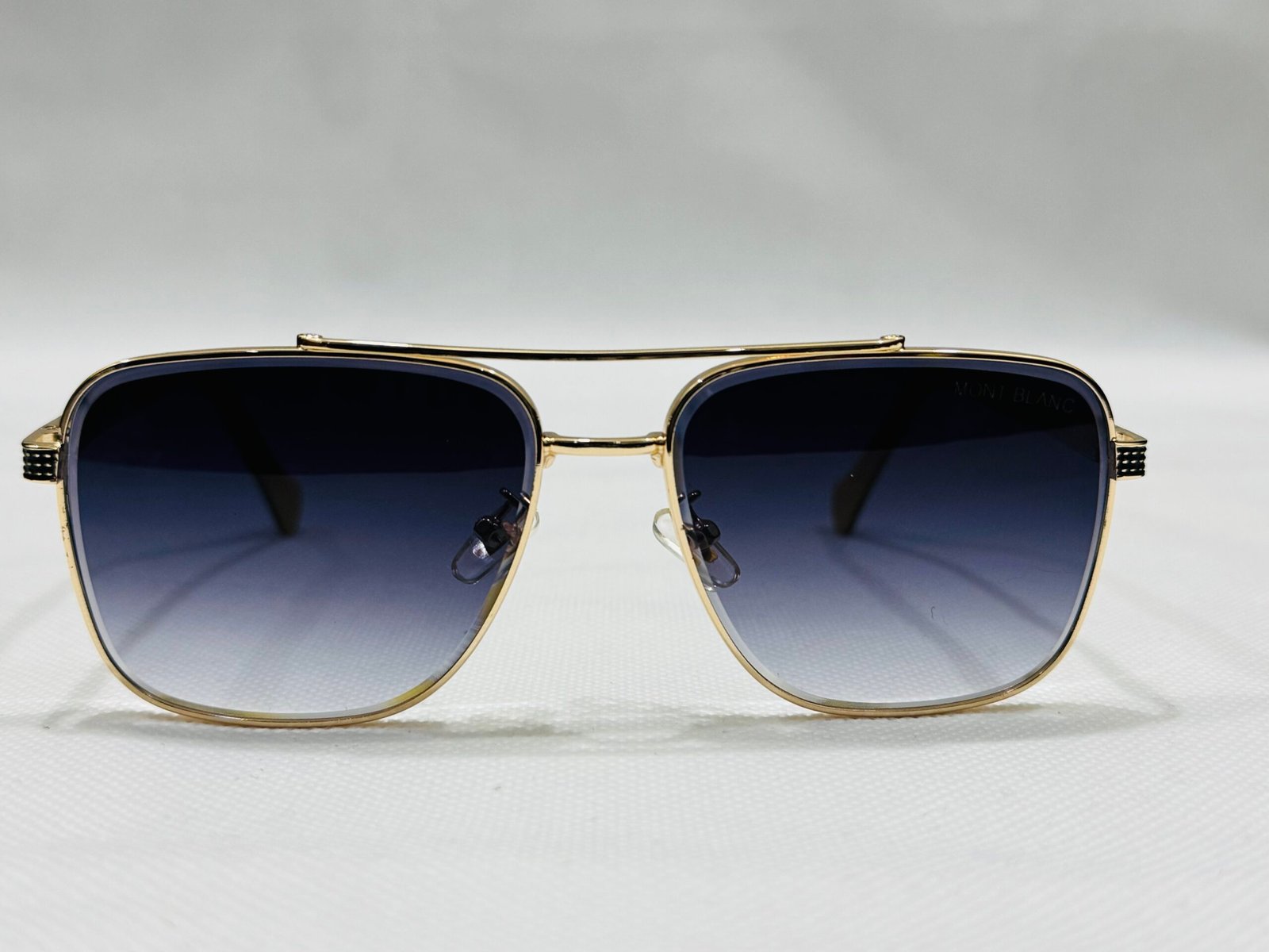 Sophisticated aviator-style sunglasses in gold-tone metal, featuring a distinctive double bridge and deep gradient lenses for an elevated, executive look.